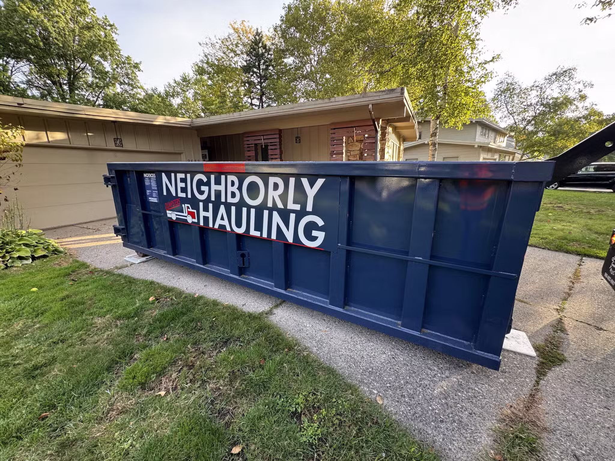 17 yard dumpster rental delivered to a West Michigan residential driveway by Neighborly Hauling