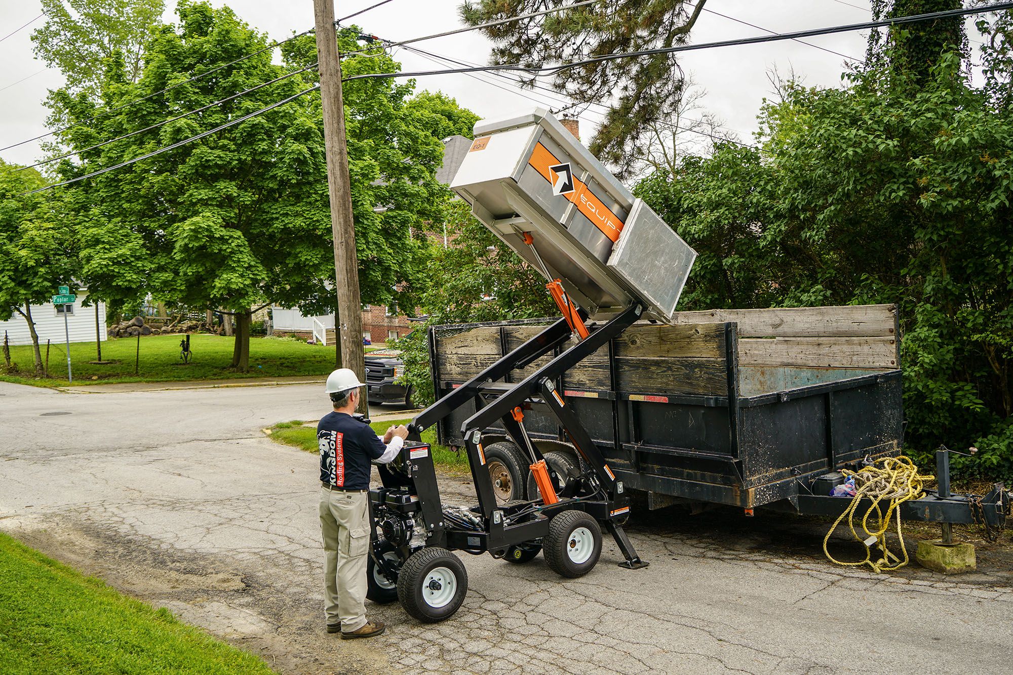 Self-propelled roofing debris loader • 12 ft lift height